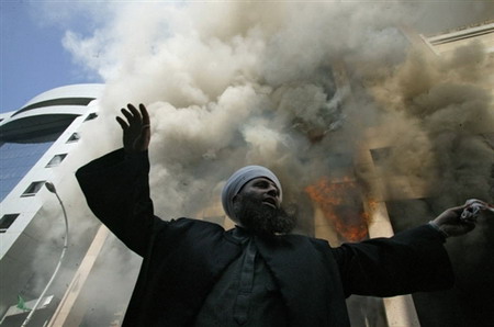 2006年2月5日,一名穆斯林牧师在丹麦驻贝鲁特大使馆外抗议。