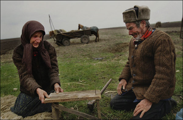 4月20日罗马尼亚,多瑙河流域发洪水后许多居民被疏散,照片上一对老夫妇正在试图做把椅子。(国际在线独家资讯 付华一)