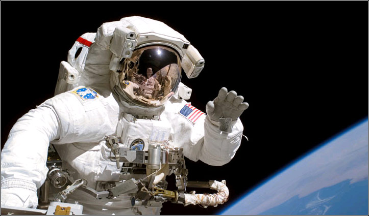 这是美国宇航局(NASA)9月14日公布的照片,宇航员Tanner在太空行走时向照相机挥手。(国际在线独家资讯 付华一)