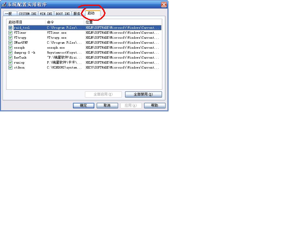 您说的那个启动选项 是 开始--所有程序--启动 那个吗?? 我那个后面是空的