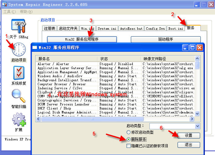 用SREng删除这个服务。这一段你可以说明白点吗!!要不加我QQ跟我说!573738129!!谢谢你了!!