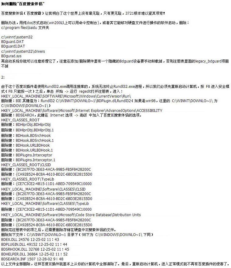 无法完全删除“百度搜索伴侣”