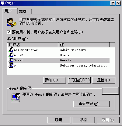 在“开始”→“运行”→输入“control.exe userpasswords2”看看能否进入“用户帐户”如果能进入“用户帐户”就可以参见下图红框中所示:
