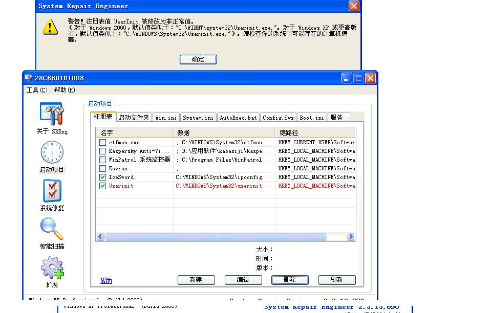 用ICESWORD强行删除,确实是删除了~可是卡巴却说文件无法找到,不能删除~晕~而且EXPLORER.EXE/BW.DLL是怎么回事啊?后来用了尔木马强删工具勾选防止再次生成,也无效,启动以后照样有~