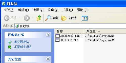 再看看C:\windows\system32\文件夹中的C85B5A86.EXE和C85B5A86T.EXE————也完好无损!!