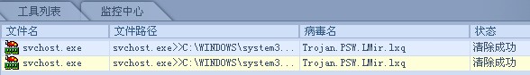 每次开机用瑞星(最新版)都可以查到病毒名:svchost.exe 路径:c:\windows\system32\svchost.exe 病毒名:Trojan.PSW.Lmir.lxq 两个这样的,也提示删除成功,但是每次开机杀毒还是可以查到,系统进程就会不断创建IEXPLORE.EXE(没开IE),系统就会变慢,请问怎么解决!拜托大家了。