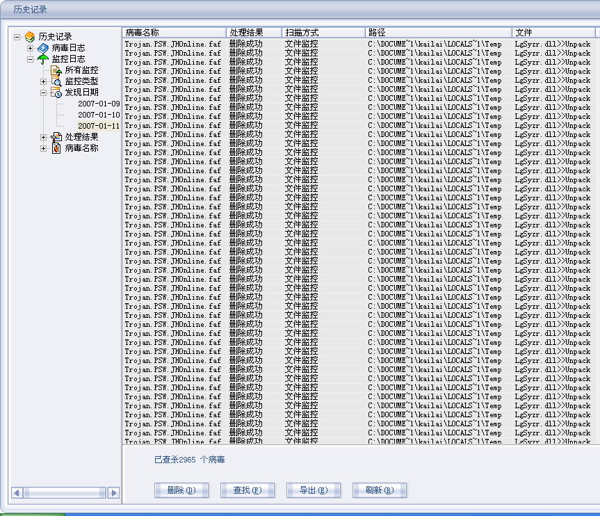 Trojan.PSW.JHOnline.faf这个病毒怎么删不了  网上也找不到答案  一开网页就不停的弹病毒 目前已经杀了3320个了  都是同一路径 同一名称怎么办啊