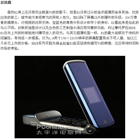 【最新手机图文评测帖039】MOTO KRZR K1