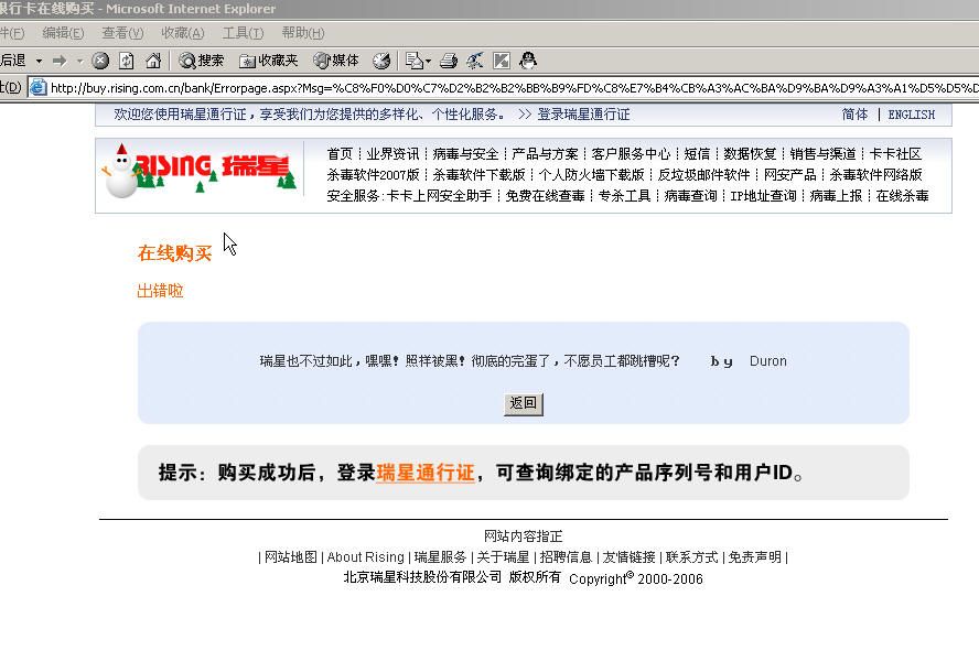 http://buy.rising.com.cn/bank/Errorpage.aspx?Msg=%C8%F0%D0%C7%D2%B2%B2%BB%B9%FD%C8%E7%B4%CB%A3%AC%BA%D9%BA%D9%A3%A1%D5%D5%D1%F9%B1%BB%BA%DA%A3%A1%B3%B9%B5%D7%B5%C4%CD%EA%B5%B0%C1%CB%A3%AC%B2%BB%D4%B8%D4%B1%B9%A4%B6%BC%CC%F8%B2%DB%C4%D8%A3%BF%A1%A1%A1%A1%A3%E2%A3%F9%A1%A1%44%75%72%6F%6E