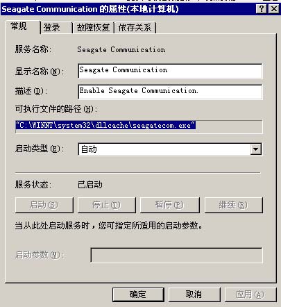 该文件隐藏在 %System%\dllcache\seagatecom.exe,并作为一个服务注册这个文件,为了在每次系统启动时运行病毒。