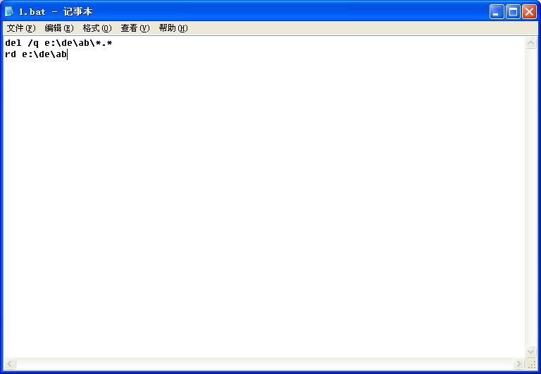 另存为*.bat文件,然后运行这个文件就可以删除E:\de\ab\目录下的所有文件和ab目录了。