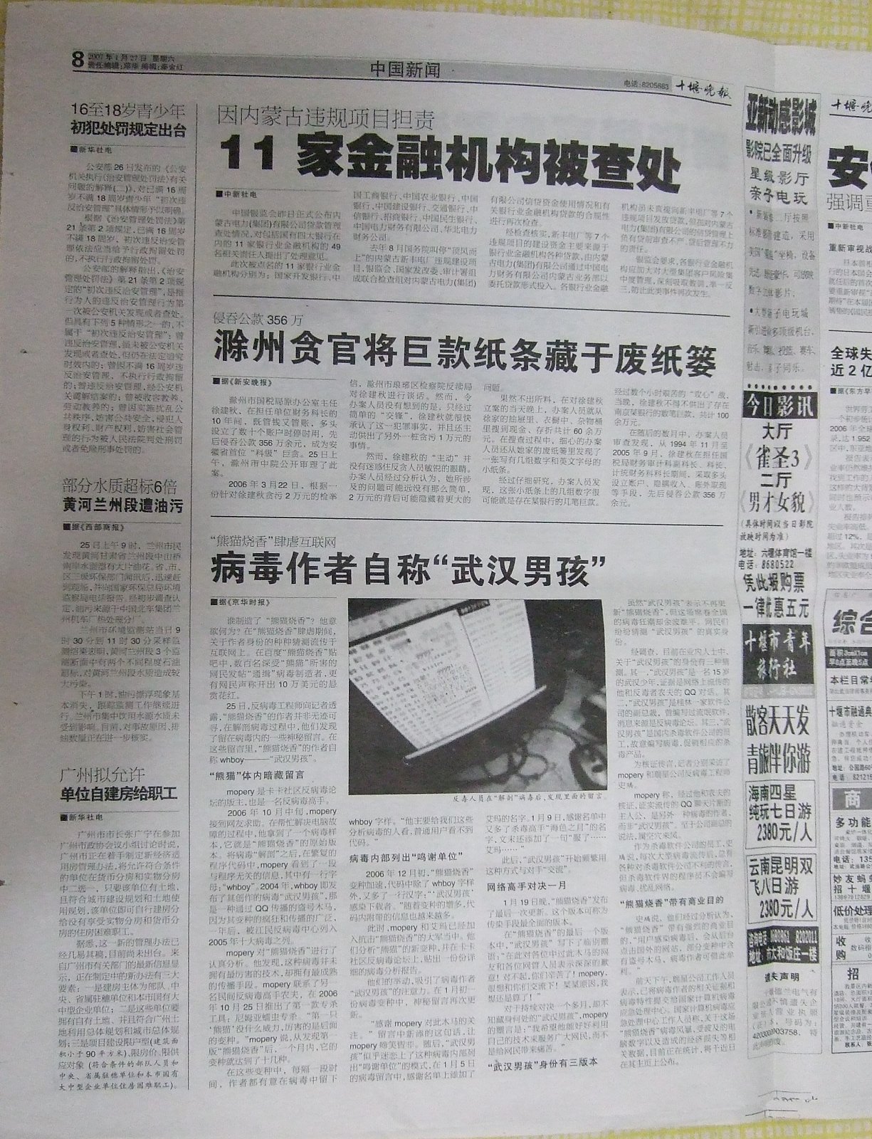 【回复“mopery”的帖子】mopery称,经过他和农夫的核证,证实流传的QQ聊天片断的主人公,是另外一种病毒的作者,而非武汉男孩。至于公司副总的说法,属空穴来风。