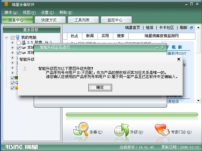 360卫士、新毒霸破坏瑞星杀毒导致升级失败(升级提示XXXXXXX 800006)的解决办法