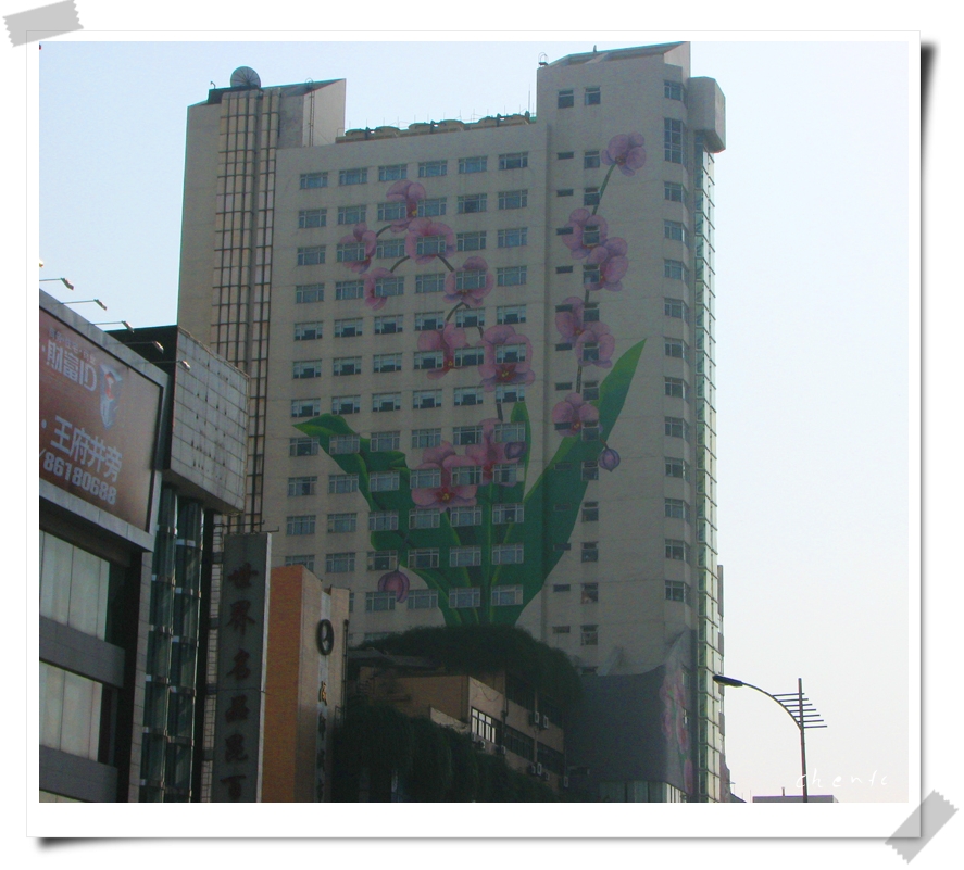 在整栋楼上画花,有些新鲜。这楼在盐市口附近。