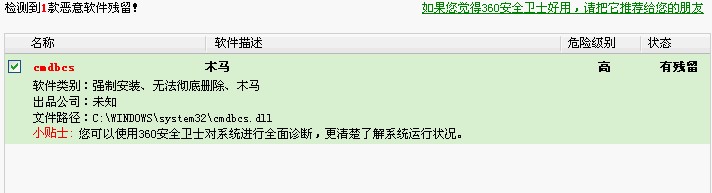 用360安全卫士.重启后还是有的话你可以按F8进安全模式,把这用360查到的危险文件删了。