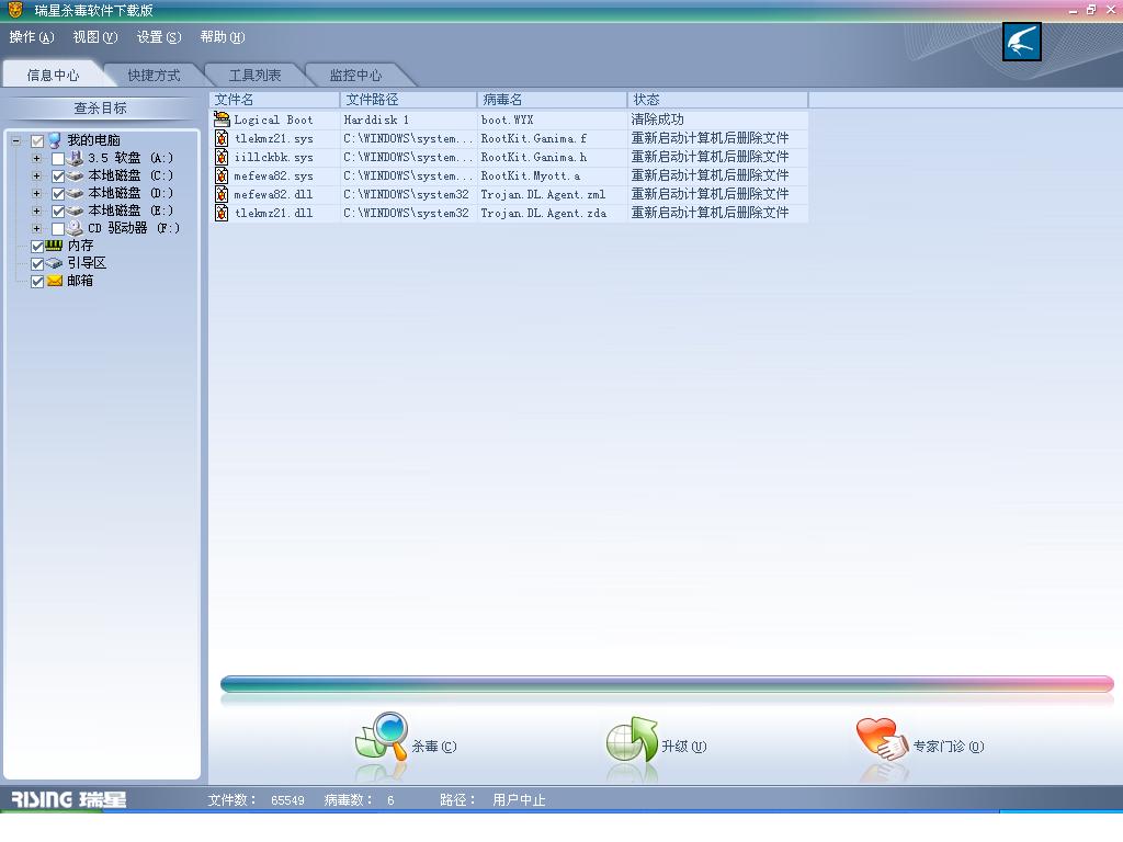 对 用瑞星光盘启动查杀