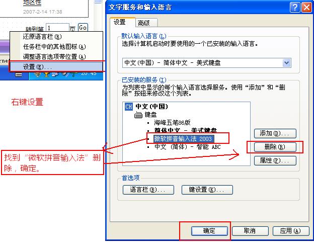 解决了,我删了输入法后重装就好了,终于知道出现这种状况的原因了,可能是个BUG:在安装微软2003后,千万不要去掉选项中的“任务栏中的其它图标”前面的勾,否则就会出现这种状况,非常讨厌,大家使用当中一定要注意