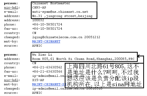 只能查到哪个国家那个省那个城市,什么宽带而已,,