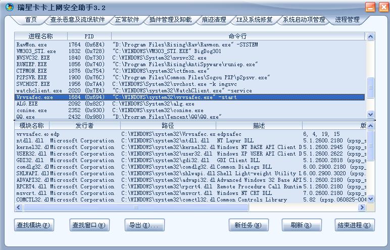 大家帮帮忙啊,vrvsafec.exe进程无法结束,用卡卡上网助手结束进程也没办法?怎么办啊?