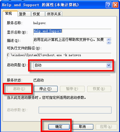 开始-控制面板-管理工具-服务-找到Help and Support-属性-启动类型:自动-启动-确定