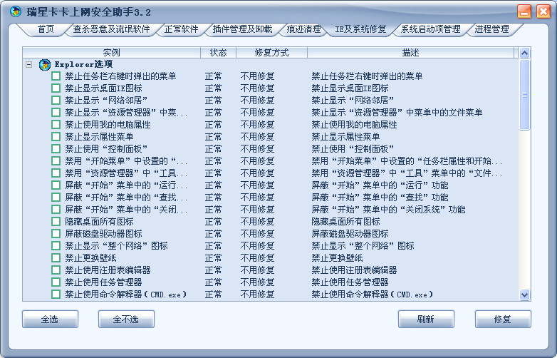 帮忙撒~~怎样取消IE系统修复中的禁用项?