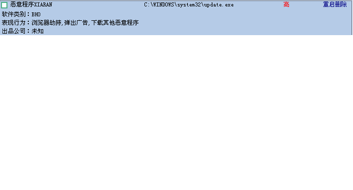 我中了XIARAN流氓软件,用卡卡杀不掉,用瑞星杀毒软件查不出来