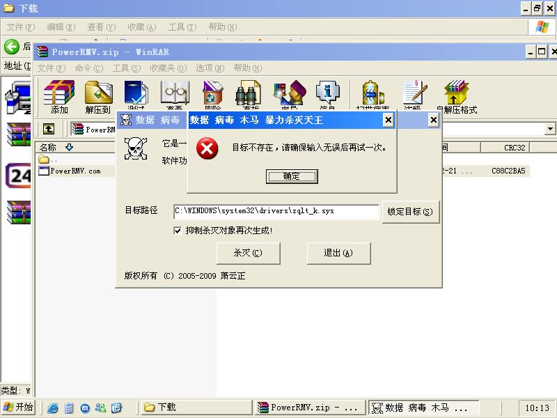 安全模式下可查到C:\windows\system32\drivers\zqlt_k.sys 用powerrmv时提示如图