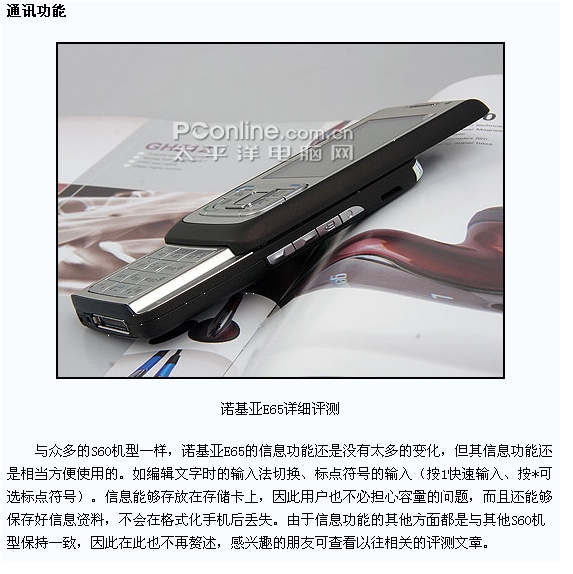 火热滑盖 诺基亚WI-FI商务手机E65评测