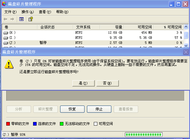 图片是我用整理磁盘是发出的警告,下面是点“是”了以后,一秒钟就把磁盘整理完后的报告:(请各位老大帮帮忙)