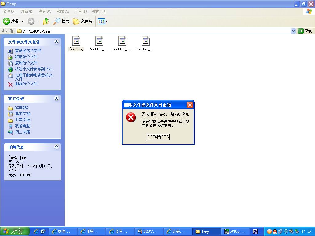 windows目录下temp文件夹里有一个~my1.tem文件,瑞星报告是病毒,名为Trojan.MNless.dp杀了之后重启又出现了,删又删不掉.怎么解决呀?
