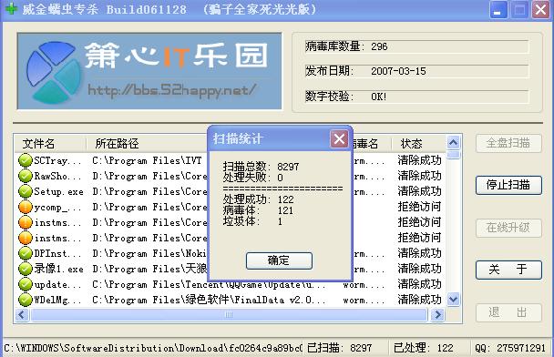 我升级到最新也查不出毒来,可用金山在线一查,病毒一大堆.