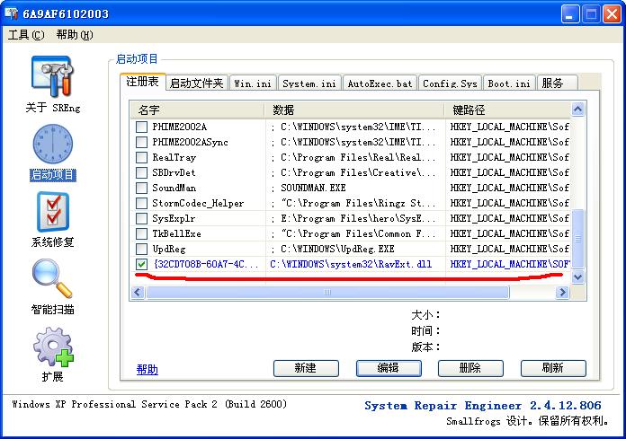 用工具 SREng 删除如下各项