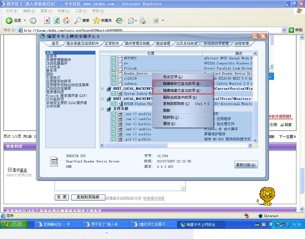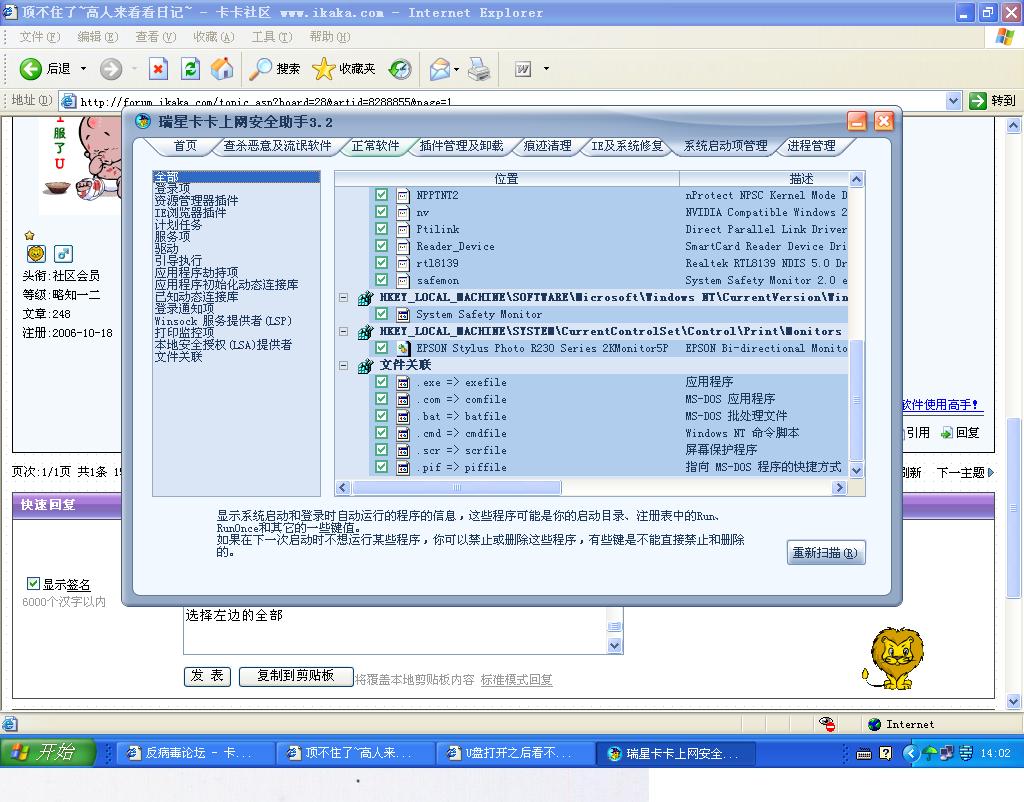然后,启用网络,来卡卡助手论坛扫描日志,请高手再替你看看。