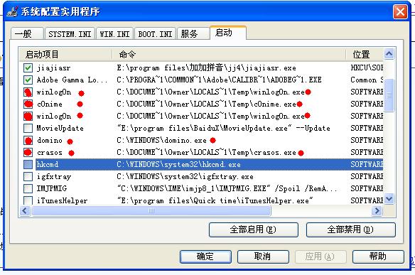 麻烦大家再看看这个,不知道怎么突然多了那么几个红色的启动项,我已经禁止了