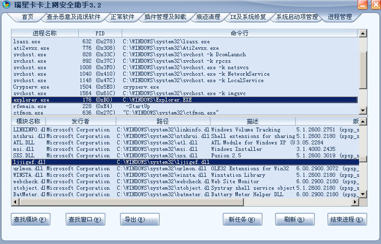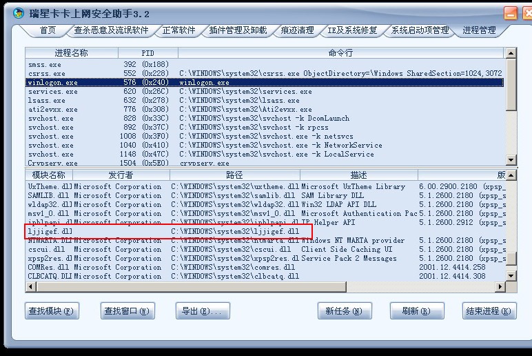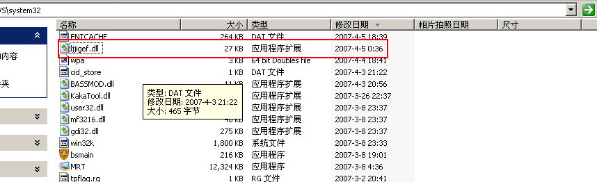 在c:\windows\system32文件夹下发现可以文件LJJIGEF.DLL!!