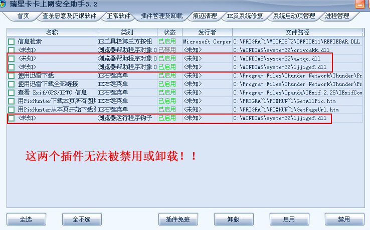 这个文件在卡卡助手里显示成如图所示,现在的情况是打开IE后经常弹出网页,但这个文件无法删除也无法禁用,在WINDOWS下无法删除,由于C盘是NFFS格式,也无法在DOS方式下删除!!请问我该怎么办? 如何清除的了啊~~~