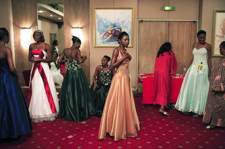 - Image Description : BEAUTY QUEENS BACKSTAGE: Unidentified contestants in the Miss Congo contest prepare backstage to enter the stage on April 21, 2006 in central Kinshasa, Congo, DRC. About twenty girls from all over Congo, DRC competed to win the crown at the Grand Hotel in Kinshasa. Diane Muzungu from the Katanga province won. Congo DRC, returned to the Miss World contest only in 2005, after almost two decades absence. Kinshasa, a city of about eight million people is battling with bad infrastructure and no public transport. Congo, DRC is in ruins after forty years of mismanagement by the corrupt dictator and former president Mobuto Sese Seko. He fled the country in 1997 and a civil war started. The country is planning to hold general elections by July 2006, the first democratic elections in forty years.