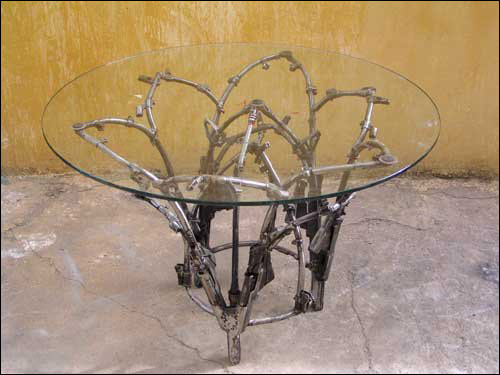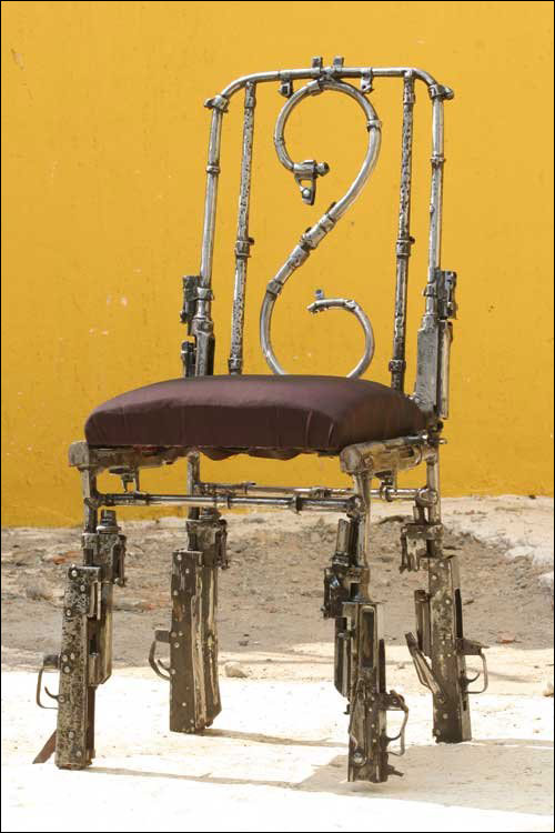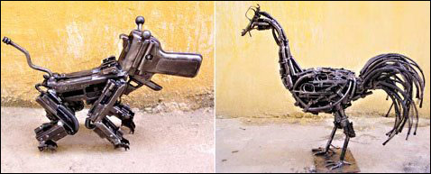 你可曾想象冲锋枪、步枪这些战场上的杀人武器也能成为艺术品?为了倡导和平,最近艺术家们将这些武器改造成了艺术品。这是用步枪枪管做成的椰子树。
