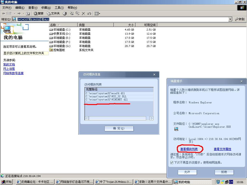 然后重启电脑,立即观察防火樯提示的,所有要连网的东东的模块。