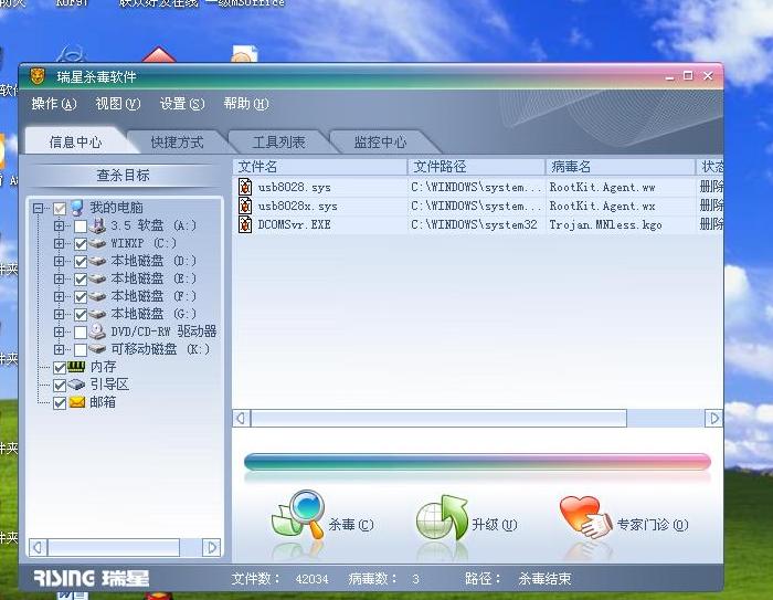 急啊!有两个病毒Trojan.Mnless.kgo和Rootkit.agent.ww怎么杀啊?