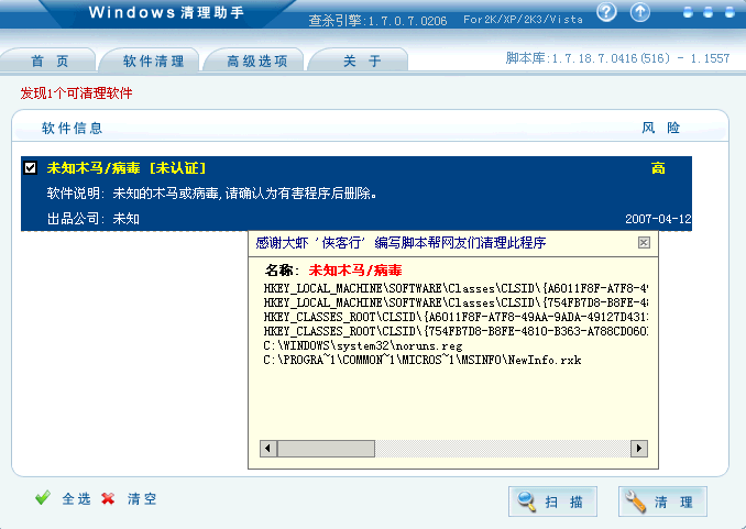 病毒创建noruns.reg导入成功后删除此文件,导入的内容:
