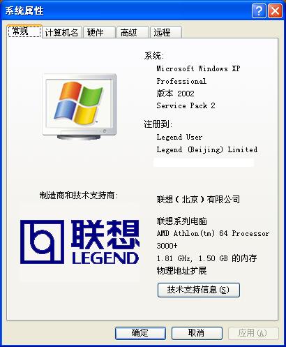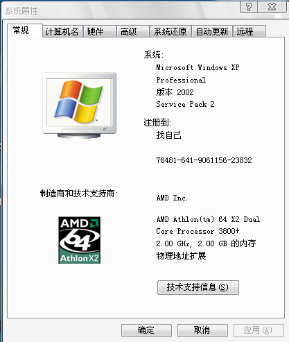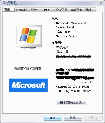 我的电脑配置!!!!!!!!!!!!! Windows XP Sever Pack 2下