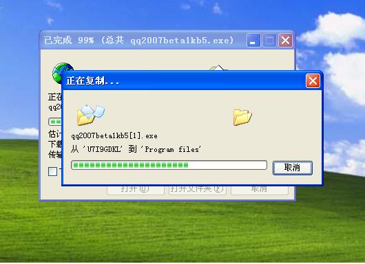 下载qq2007betalkb5到D盘.到99%时就会弹出另外一个对话框