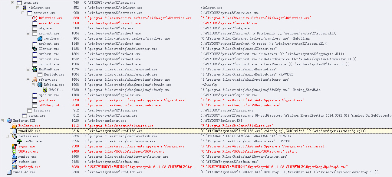仔细的查过毒,未发现有病毒.....而且,两个rundll32都是指向c:\windows\system32里的,好像是同一个文件(才看模块后发现两个rundll32加载的dll好像有所不同.),为什么会运行两个呢? 其实这个问题在几个月前就有了,只是当时看到没有什么影响....也杀毒无果,所以也就没有在意,不过现在机器好像越来越慢了....有些担心...