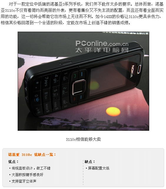 『手机评测帖058』NOKIA 3110c
