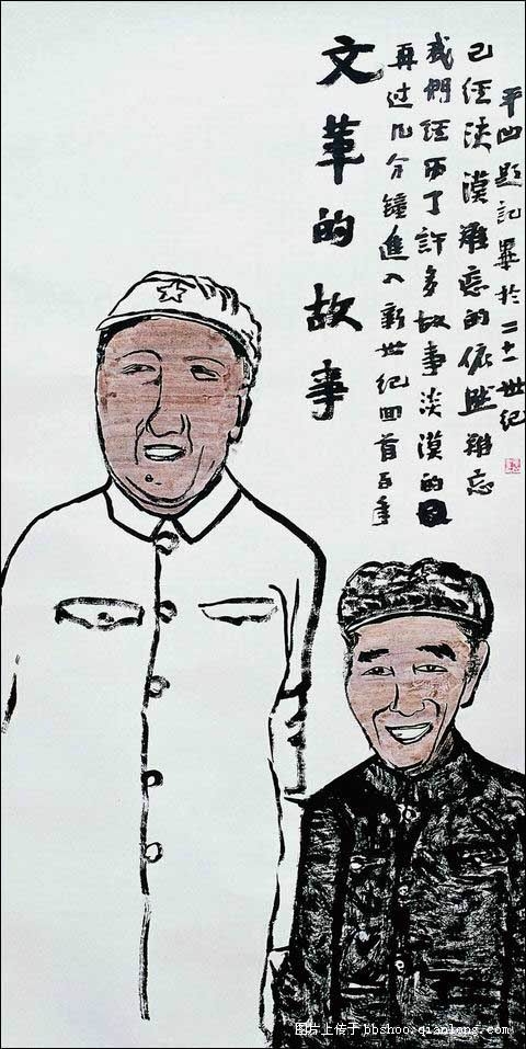 昨天,二十世纪的倒数第二个晚上,我又梦见我的父亲,早晨起来在床上闷了半天,窗外的马路上正有一队欢庆新世纪的队伍走过,我趴在窗口看着,想:一个世纪就这样过去了吗,我的父亲,包括千千万万的人以他们的苦难完成了这个世纪的历史吗?欢庆的人群不知喊些什么唱些什么,形成轰轰嗡嗡的市声,这里边又有多少鬼魂的呼号?!就在这个下午,我的一位画家朋友召集了一伙人去他的画室品茶吃酒,说是要守这个交接之夜,但是,酒过三巡,却都研墨铺纸叫着画画,画画是我们发泄欢乐和烦恼的主要方式。我原本想画画我的父亲,画父亲昨天晚上在梦中的模样,画到一半便停笔了,我不愿意画出父亲苦愁的脸,突然涌动了画一画“文化大革命”,我奇怪的是从没有学过素描,却极快地完成了这幅画。