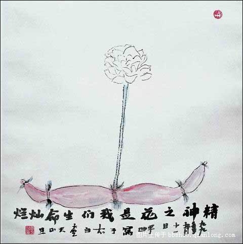 此画作于深夜,屋里还呆着三个来访人,画完后见其中一人亲自又要沏一壶新茶来喝,我说:“为不浪费茶,再喝一标你们走吧,今日我困了!”又打了一个哈欠。第一次平静了脸赶客,觉得自己也有了虎气。人一走,满身清静,叼颗烟欣赏此画,欣赏半小时,我也成佛了。