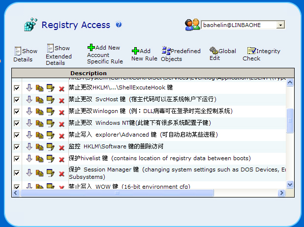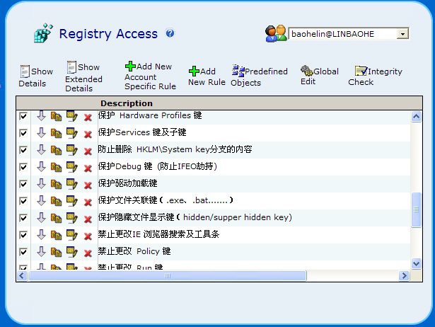tiny的注册表防护设置应该包括下面3幅图的内容: