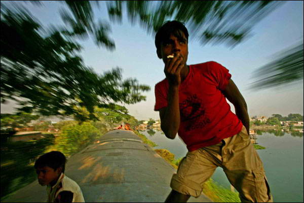 住在火车站的孩子能经常以这样的方式往返于城镇之间,同时,还能免费寻求刺激。
