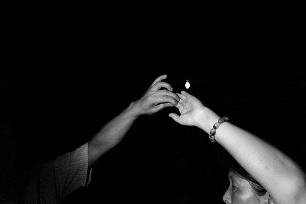 2006年9月26日,北京残疾人活动中心,两位盲人在跳舞的过程中伸出手臂寻找对方。